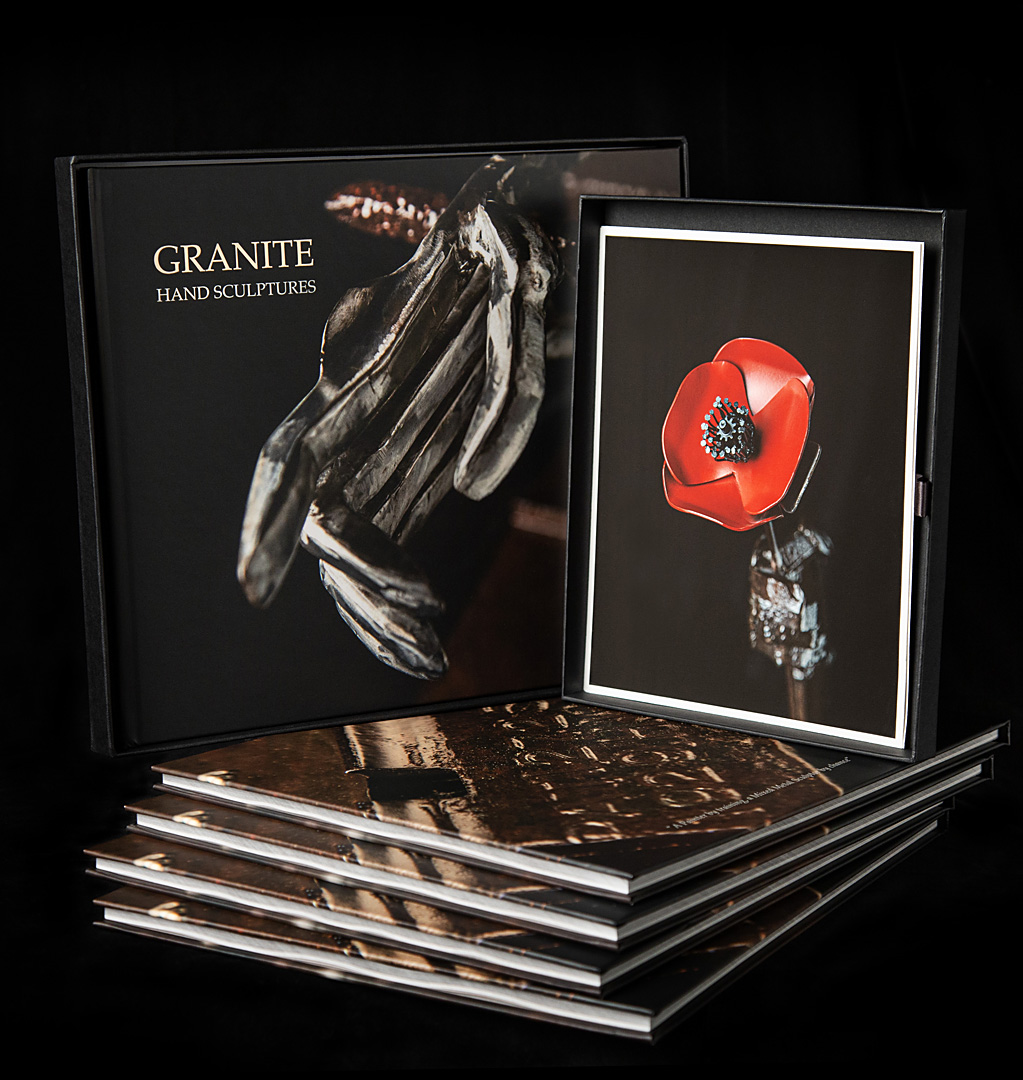 Granite's deep passion for his materials shines through in every creation, reflecting his skill in achieving balance and harmony within shape and form. Each piece is a unique expression, contributing to a cohesive series that explores the theme of hand gestures.